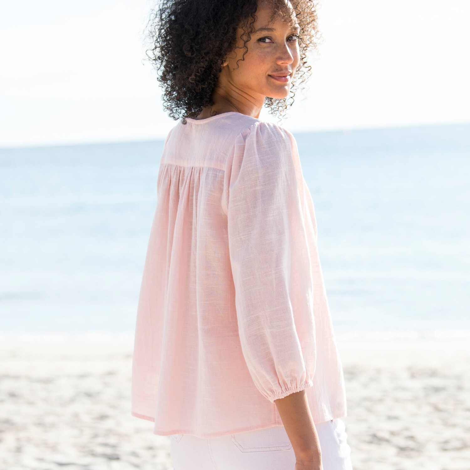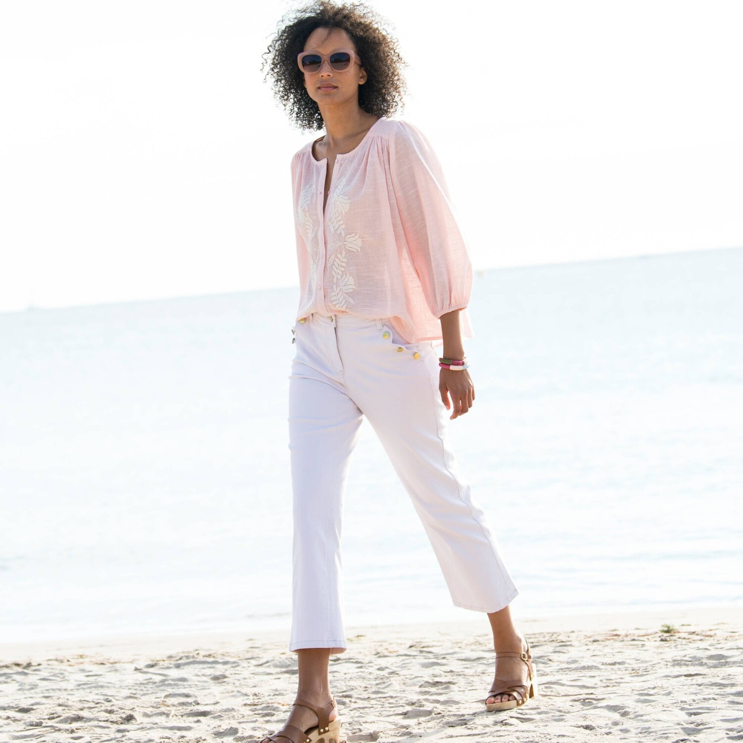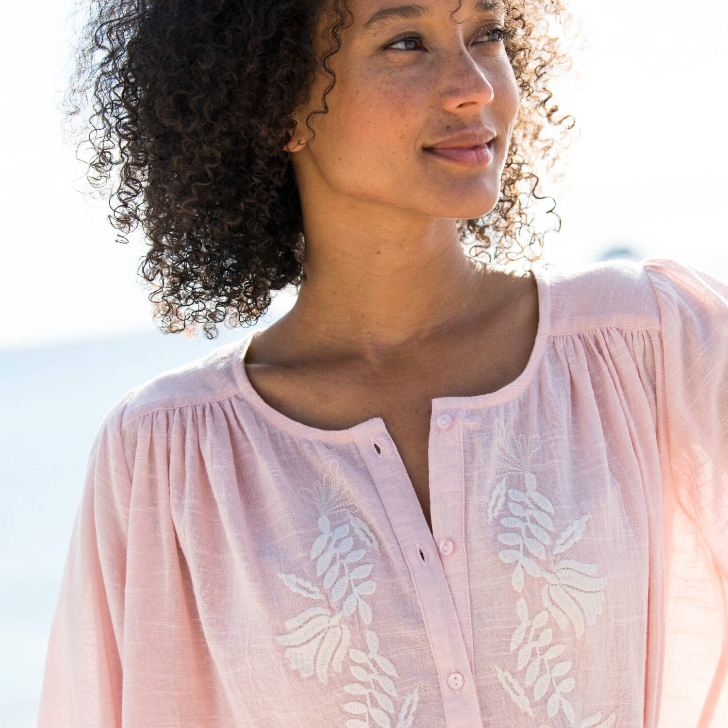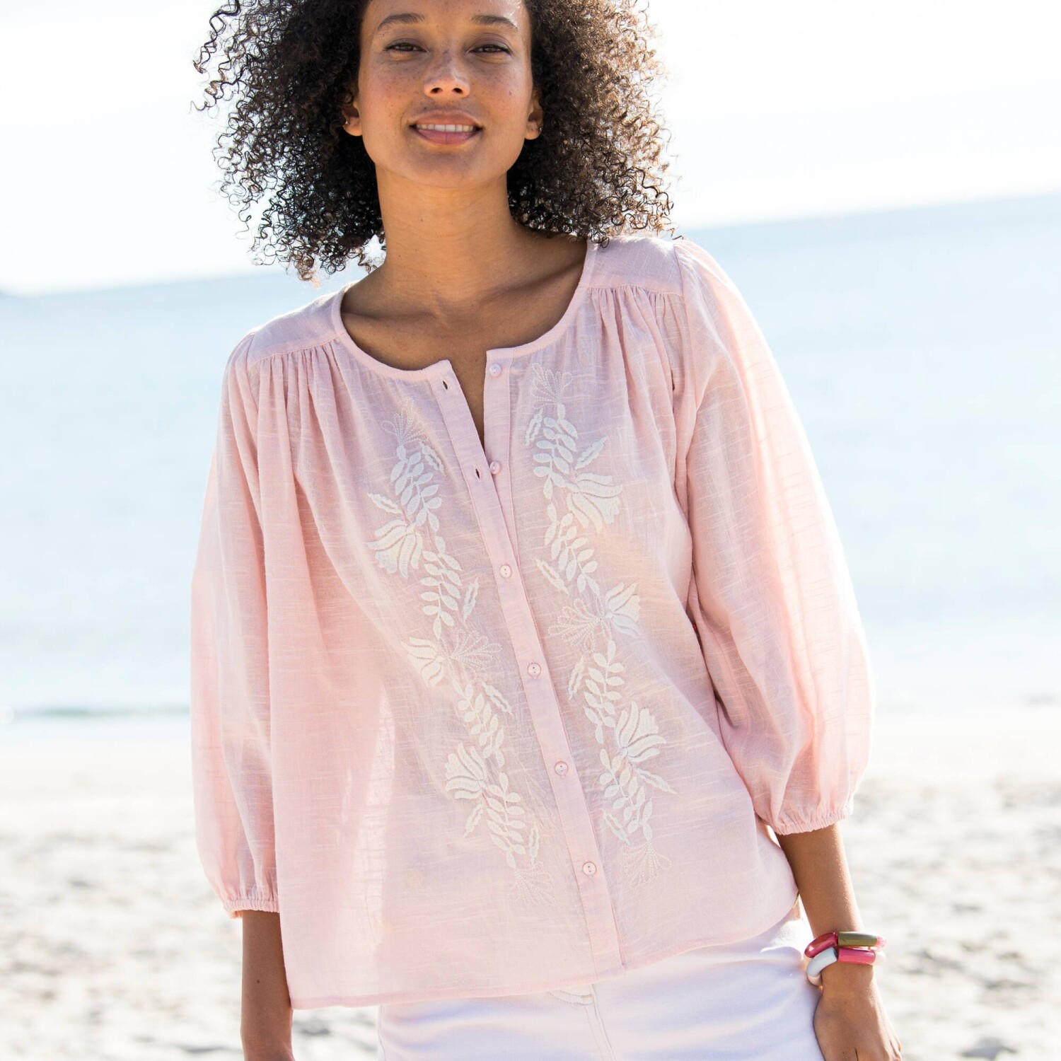 Styl boho jest również noszony w tym sezonie. Nie przegap więc haftowanej bluzki. Okrągły dekolt. Szerokie rękawy 3/4. Elastyczne mankiety. Marszczone szwy na ramionach z przodu i z tyłu. Marszczenia na ramionach. Perłowe guziki z przodu. Prosty dół. Można prać w pralce.