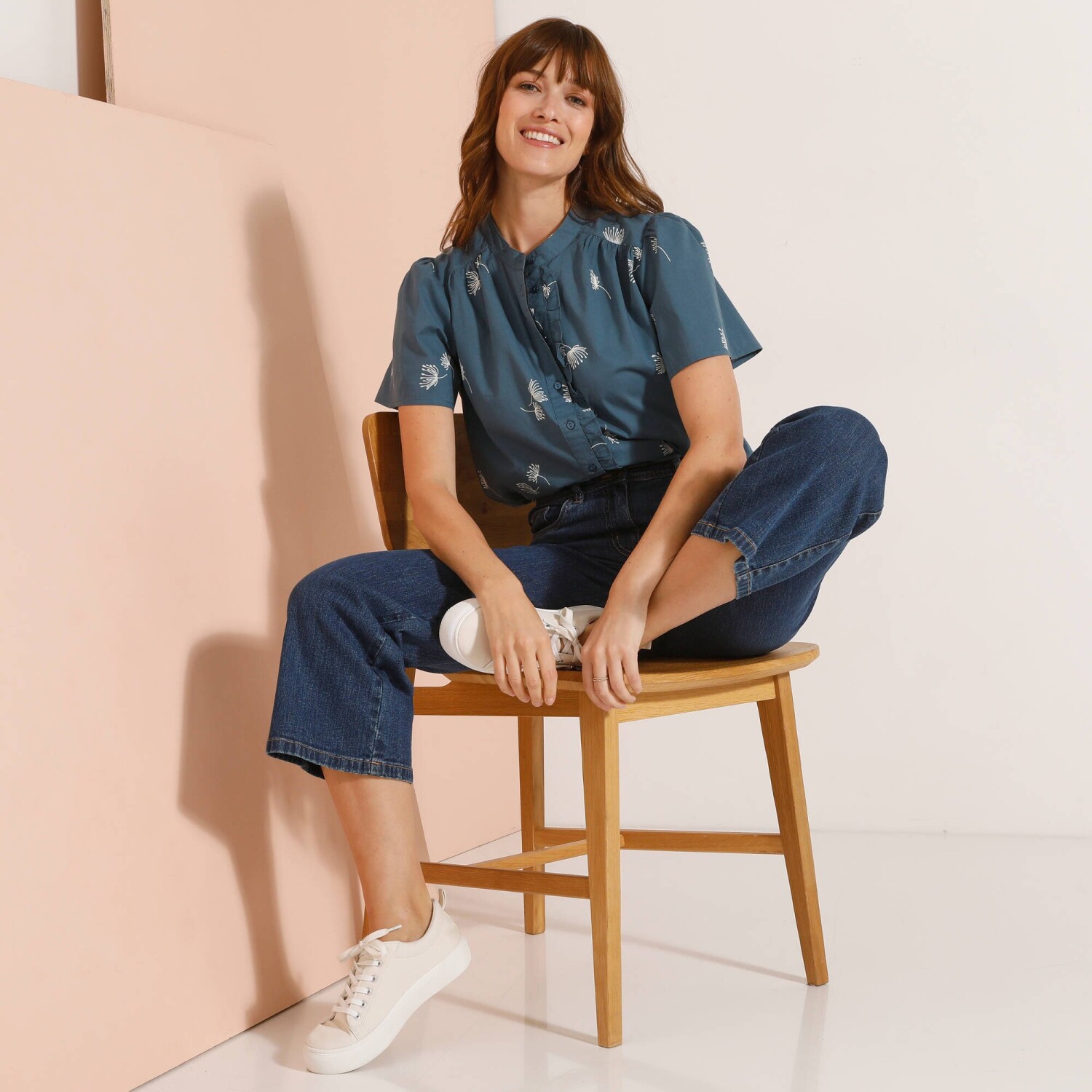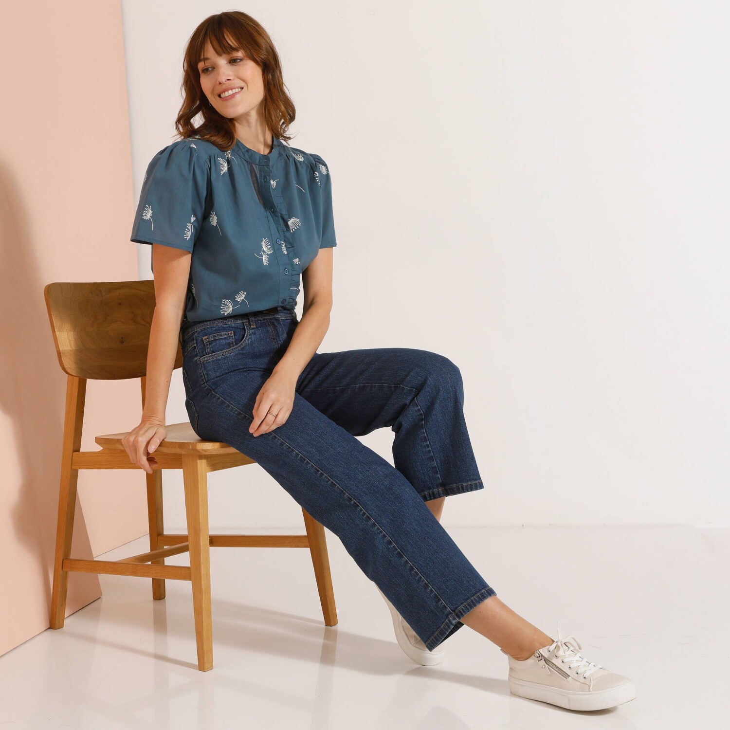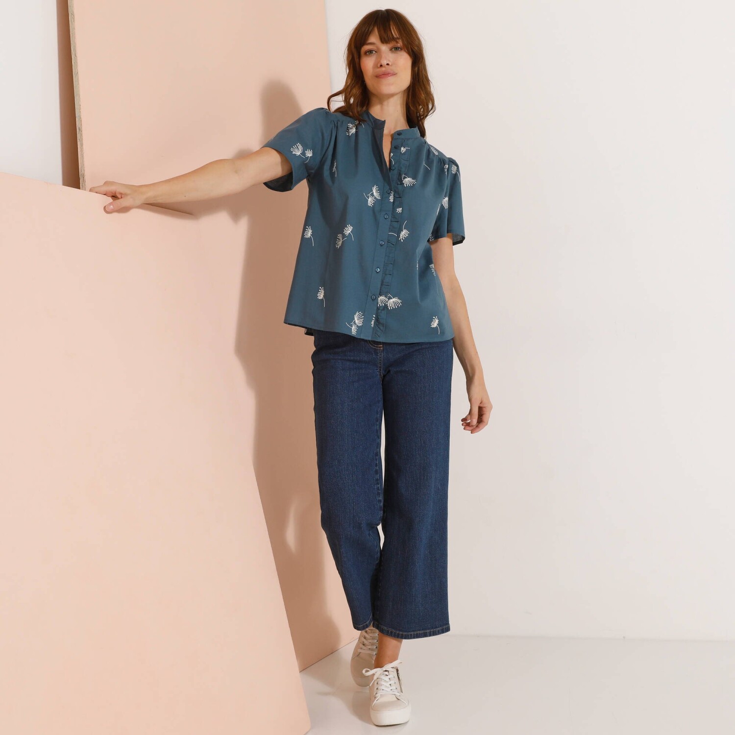 Stylowa bluzka pasująca do każdej kobiecej garderoby! Z łatwością zestawisz ją z ulubionymi spodniami, tworząc oryginalną stylizację. Dopasowany krój i długość. Okrągły dekolt z zakładkami z przodu. Spodnie zapinane na 4 guziki. Krótkie rękawy zakończone patką + guziki. 2 naszywane kieszenie z przodu. Dolny dół. Można prać w pralce.
