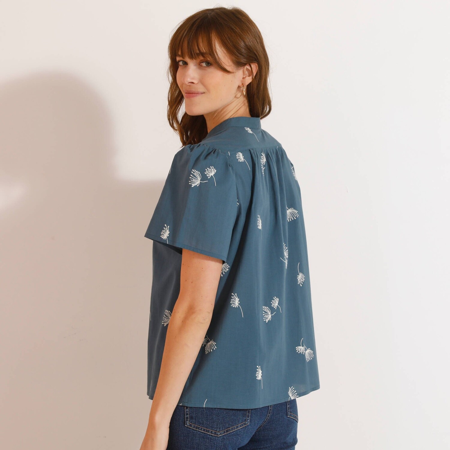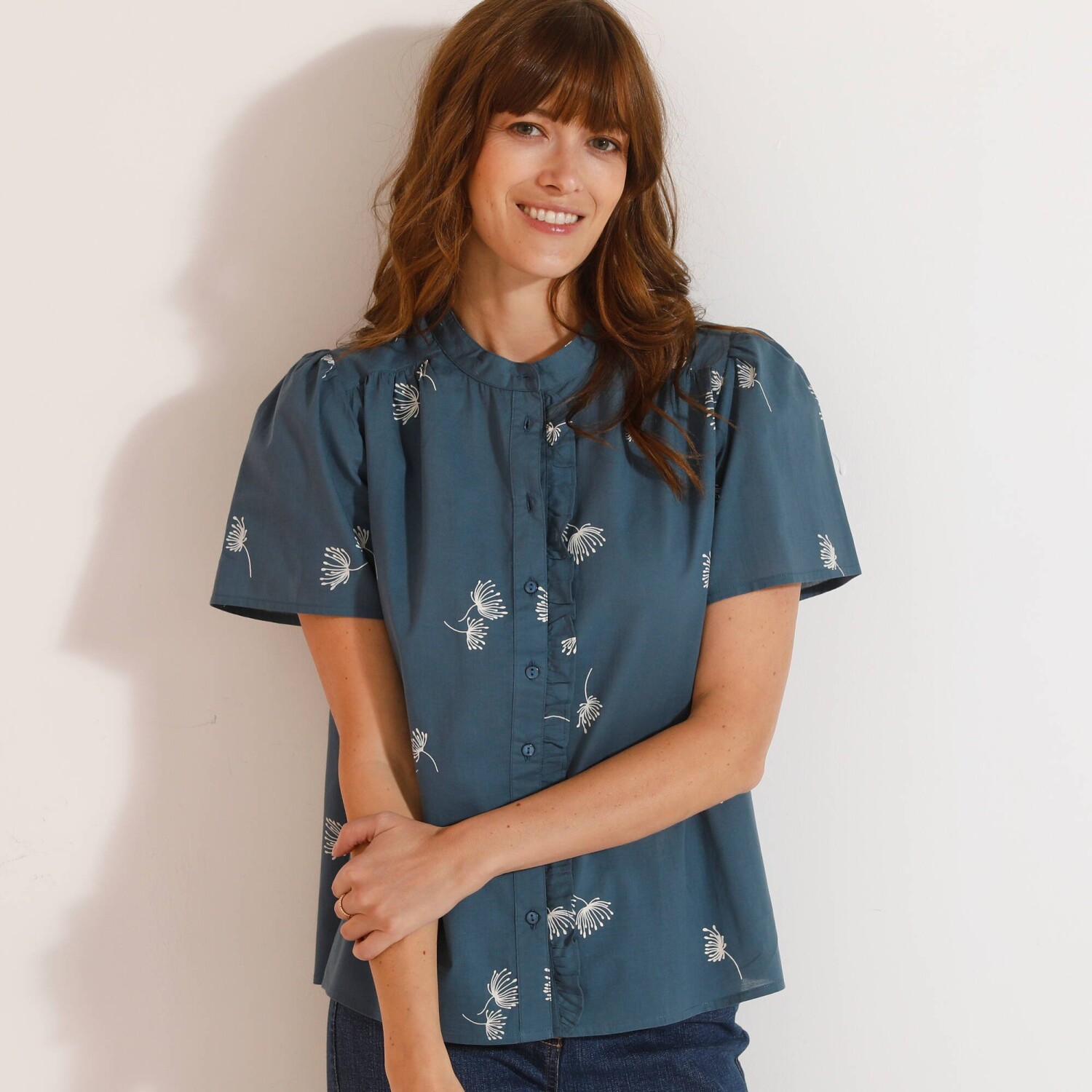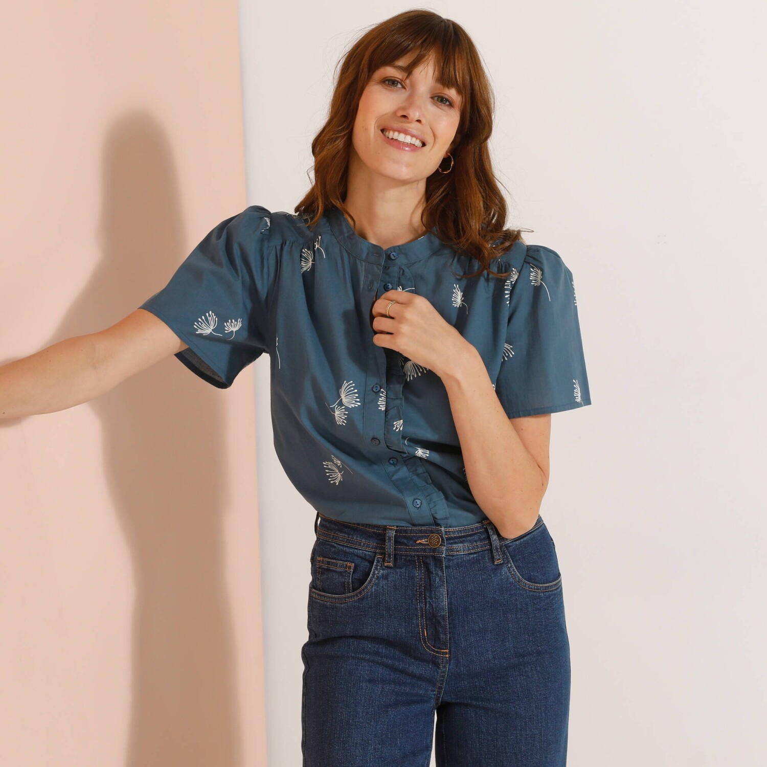 Stylowa bluzka pasująca do każdej kobiecej garderoby! Z łatwością zestawisz ją z ulubionymi spodniami, tworząc oryginalną stylizację. Dopasowany krój i długość. Okrągły dekolt z zakładkami z przodu. Spodnie zapinane na 4 guziki. Krótkie rękawy zakończone patką + guziki. 2 naszywane kieszenie z przodu. Dolny dół. Można prać w pralce.