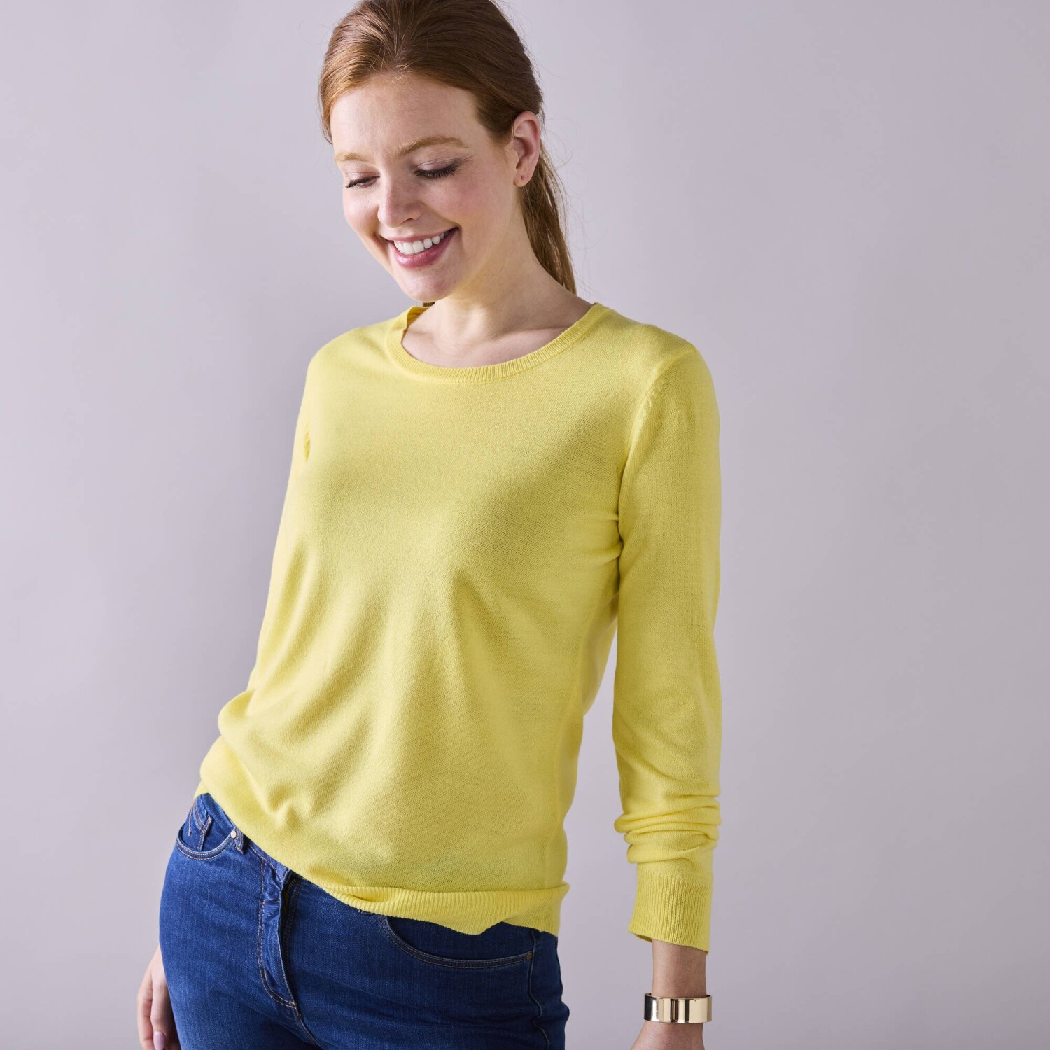 Podbiliśmy serca tym miękkim w dotyku swetrem z okrągłym dekoltem. Prosty, łatwy w pielęgnacji krój. Okrągły dekolt. Długie rękawy. Prosty dół. Można prać w pralce.