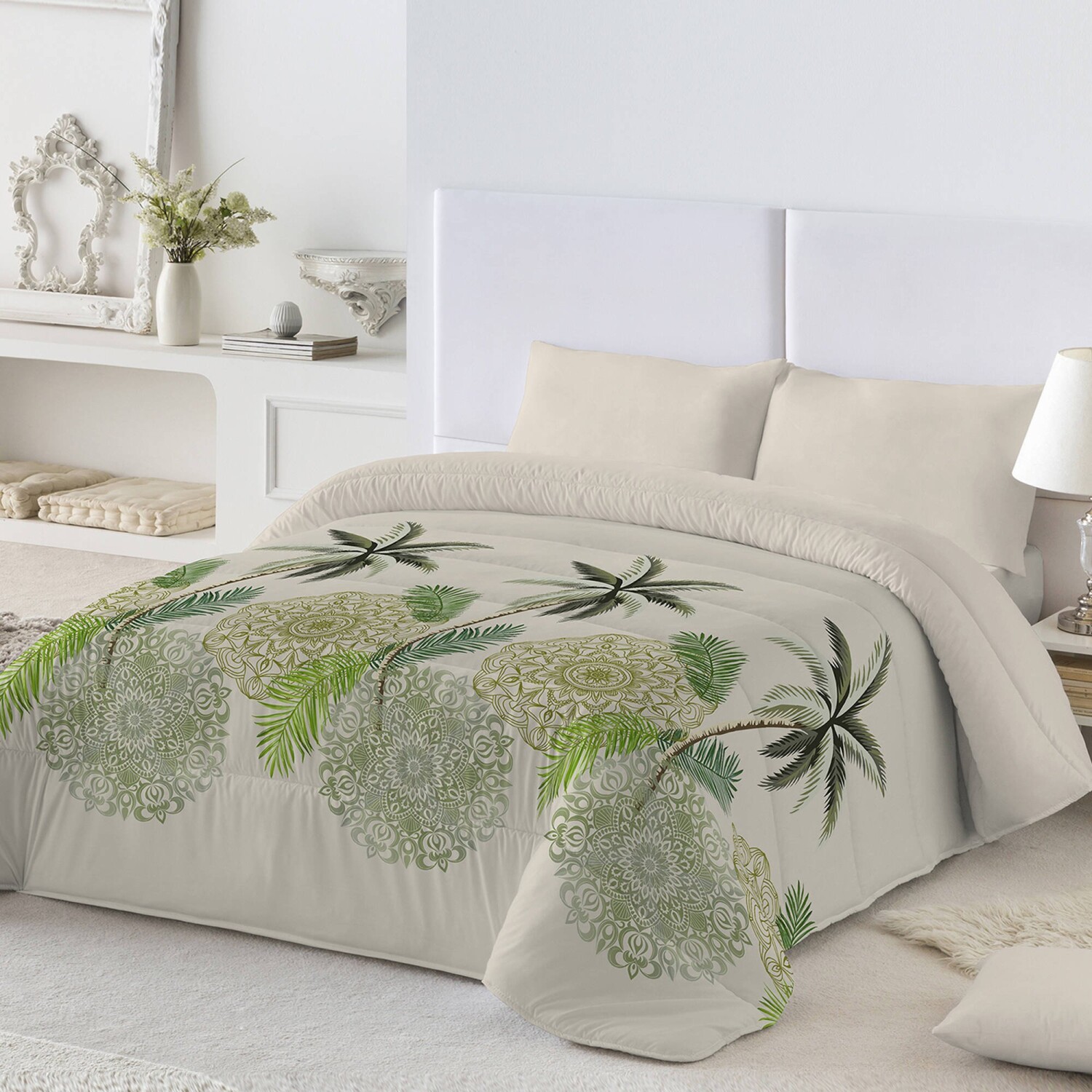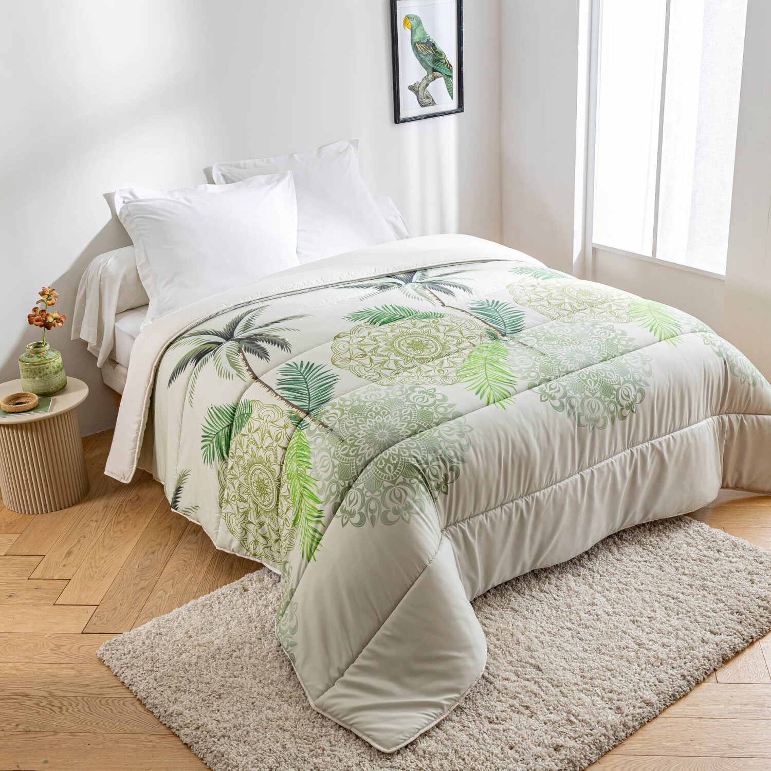 Zakochaj się w świecie roślin i zen z tym kocem z nadrukiem tropikalnym i mandalą. Przytulny koc z mikrofibry ma jedną stronę zadrukowaną i jedną gładką, a do tego jest ciepły i wyjątkowo miękki. Dwustronny i dekoracyjny, można go używać również bez poszewki. Wypełnienie o gramaturze 200 g/m², wypełnione silikonem i włóknami poliestrowymi, zapewnia miękkość i ciepło, a także lepszą izolację. Gramatura wypełnienia 200 g/m² nadaje się do ogrzewanych pomieszczeń (20°C i powyżej). Dwustronny, aby zmienić wygląd: jedna strona zadrukowana, druga gładka. Szybkoschnący. Prać w temperaturze 40°C.