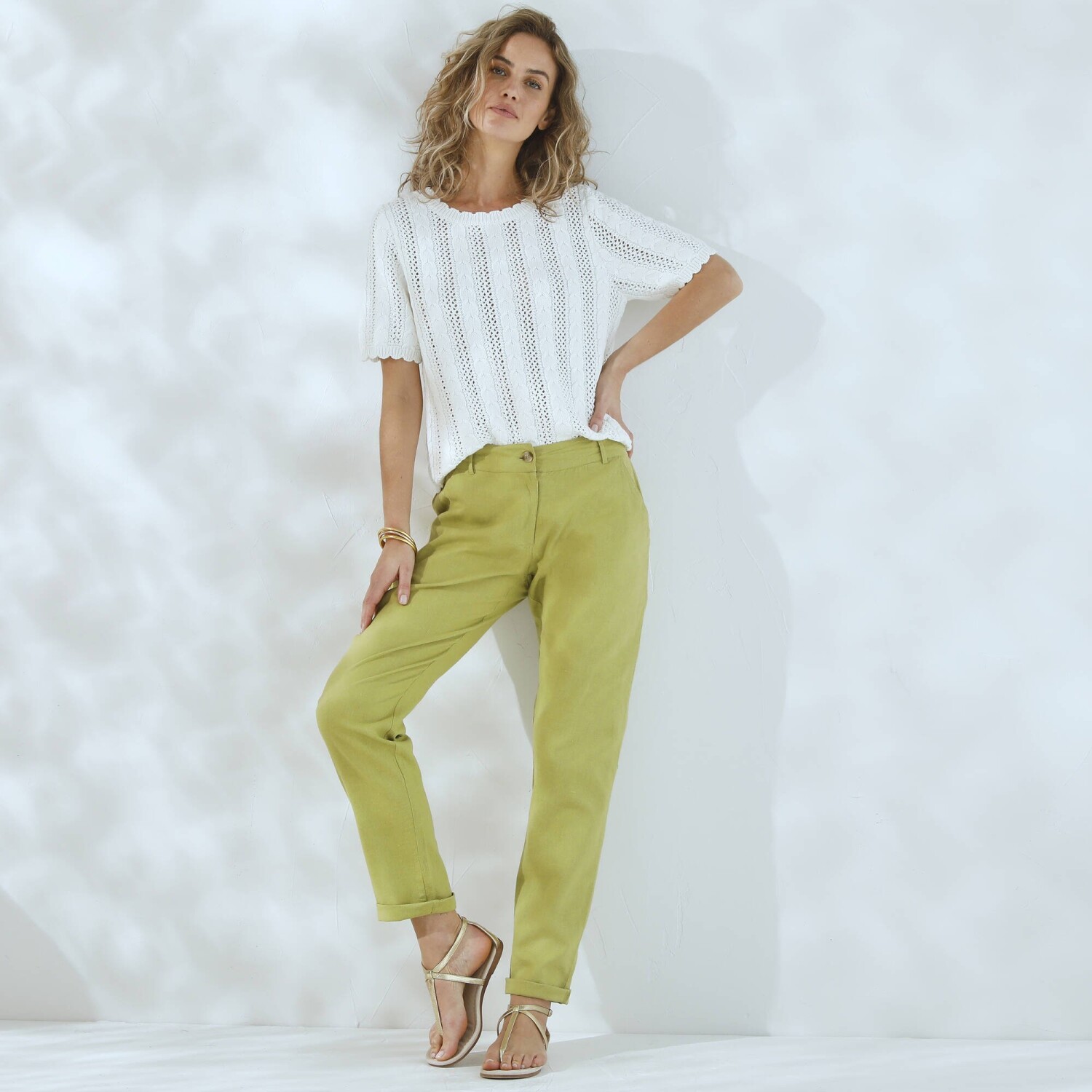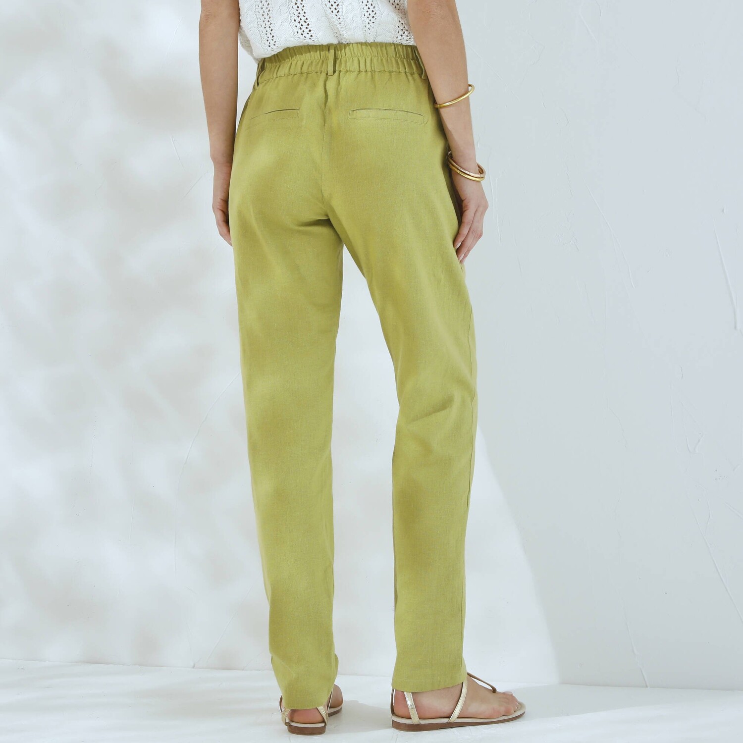 Przewiewne spodnie chino z elastycznym paskiem, bawełna i płótno lniane