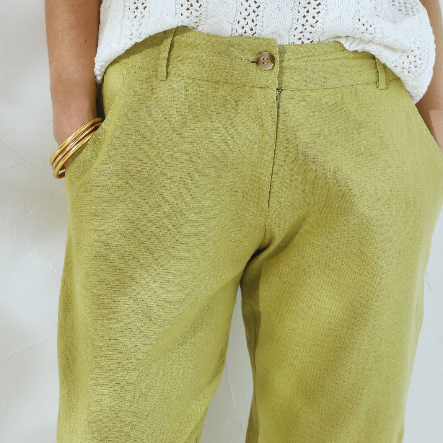 Łatwość utrzymania i wygoda noszenia to główne zalety spodni o popularnym kroju chino. Dodatkowo wykonane ze świeżej mieszanki bawełny i lnu. Krój chino (bez ucisku na uda). Normalna wysokość talii. Wyprofilowany pas ze szlufkami, elastyczny z tyłu. Zapięcie na suwak i guzik. 2 kieszenie ze ściągaczem. 2 fałszywe kieszenie ze ściągaczem z tyłu. Można prać w temperaturze 30°C.