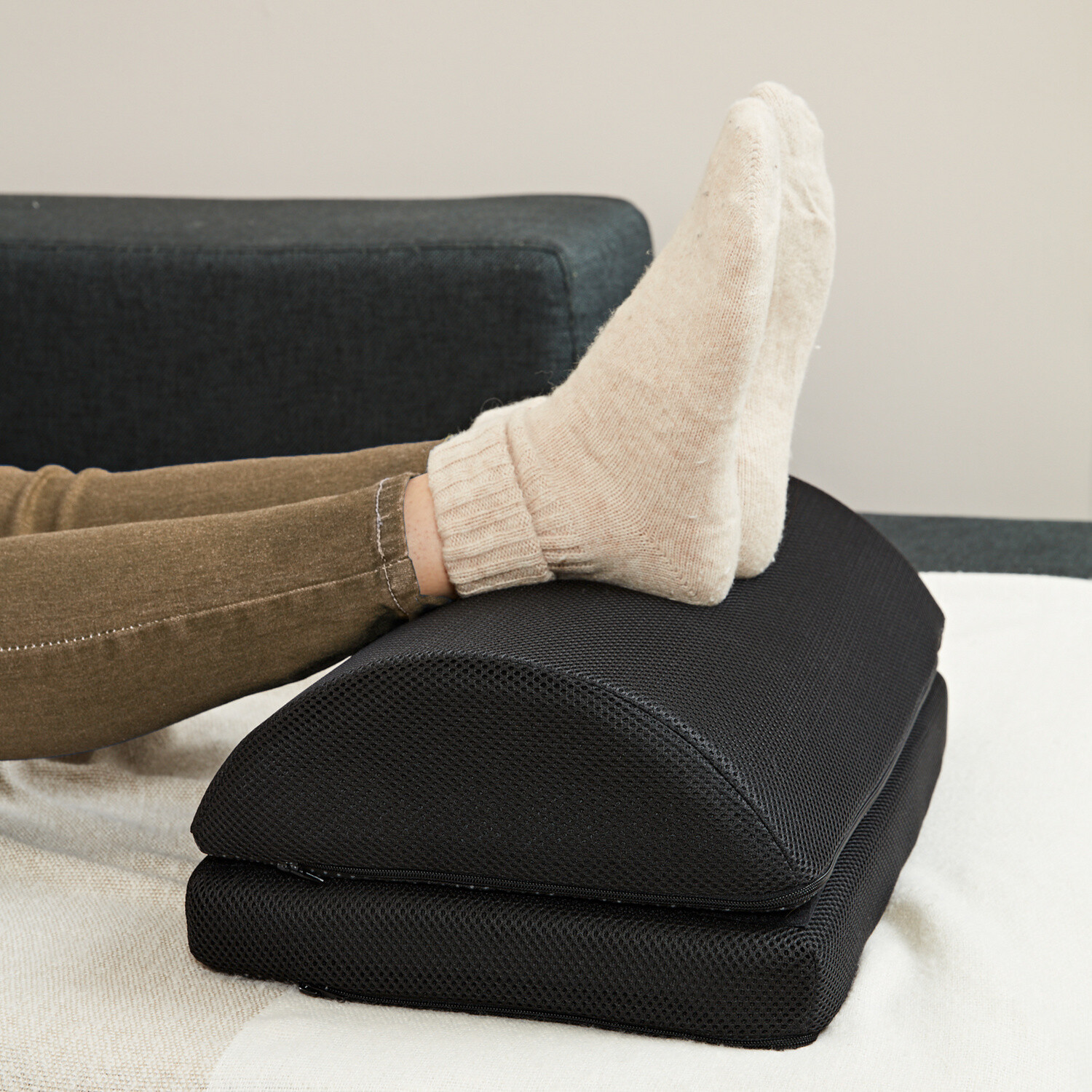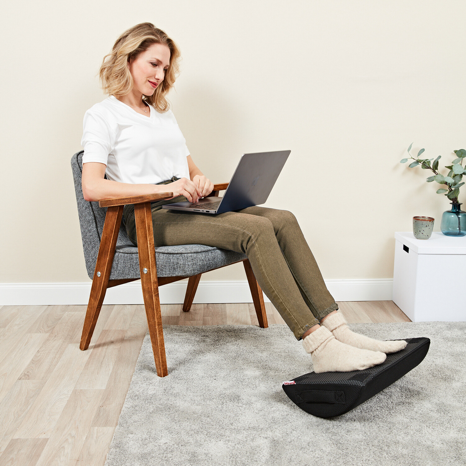 Elastyczna podpórka pod nogi łagodzi ból stóp, nóg, bioder, szyi i pleców. Zakrzywiony kształt optymalnie rozkłada ciężar ciała i zapewnia wyraźną ulgę. Można ją również używać do góry nogami jako huśtawkę dla lepszej mobilności. Z praktycznym uchwytem do przenoszenia i zdejmowaną podstawą do regulacji wysokości. Łagodzi i uspokaja podczas siedzenia. Dla lepszej postawy ciała. Regulowana wysokość. Można używać do góry nogami jako huśtawka.