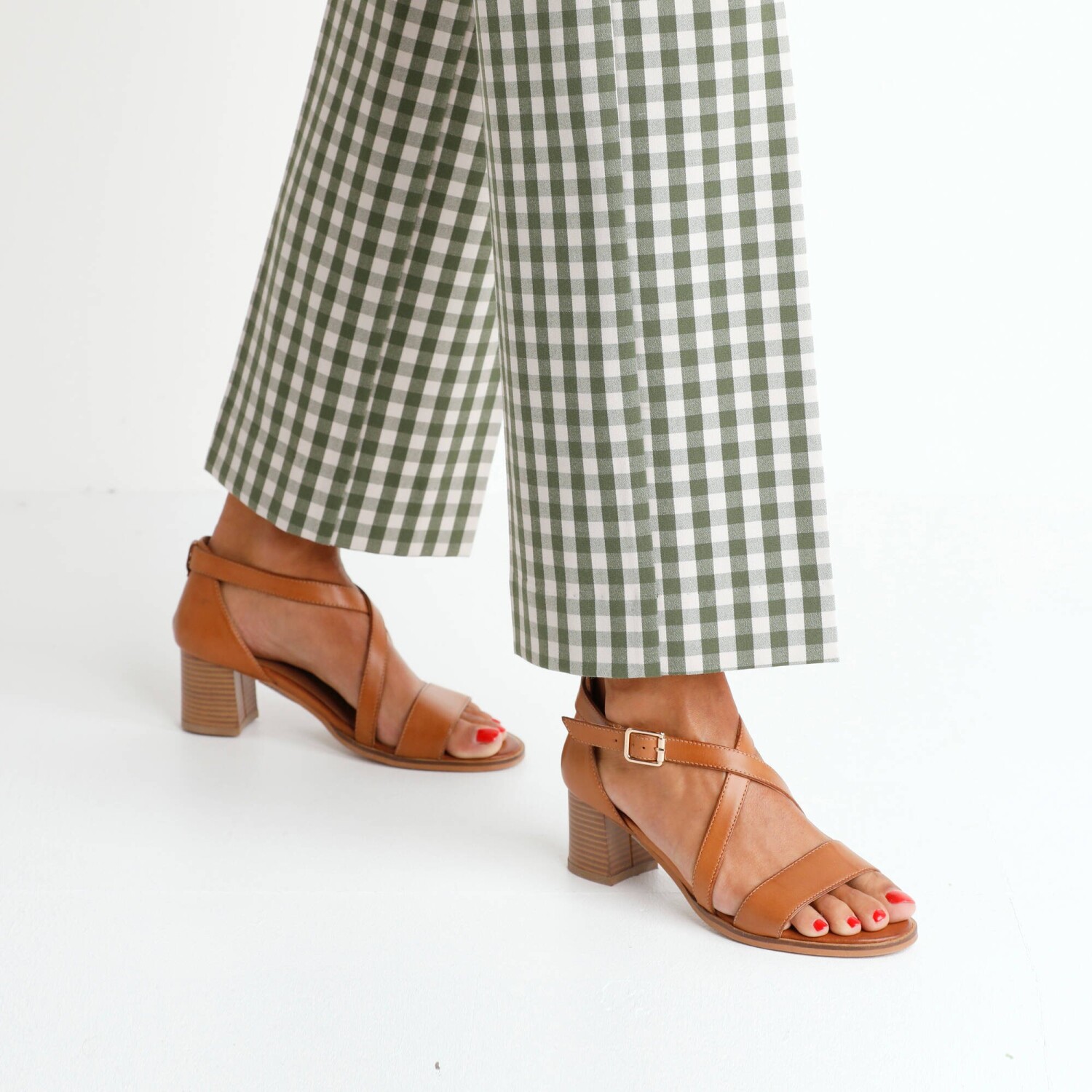 Skórzane sandały na obcasie z paskami są wyjątkowo wygodne i łatwe do łączenia i dopasowywania! Miękkie w dotyku. Skrzyżowane paski wykonane z plecionej skóry. Skórzana wkładka na piankowym podkładzie dla miękkiego komfortu. Regulowany pasek wokół kostki z metalową klamrą i gumką. Szeroki, powlekany obcas. Regularnie pielęgnuj buty produktem chroniącym przed plamami i wilgocią.