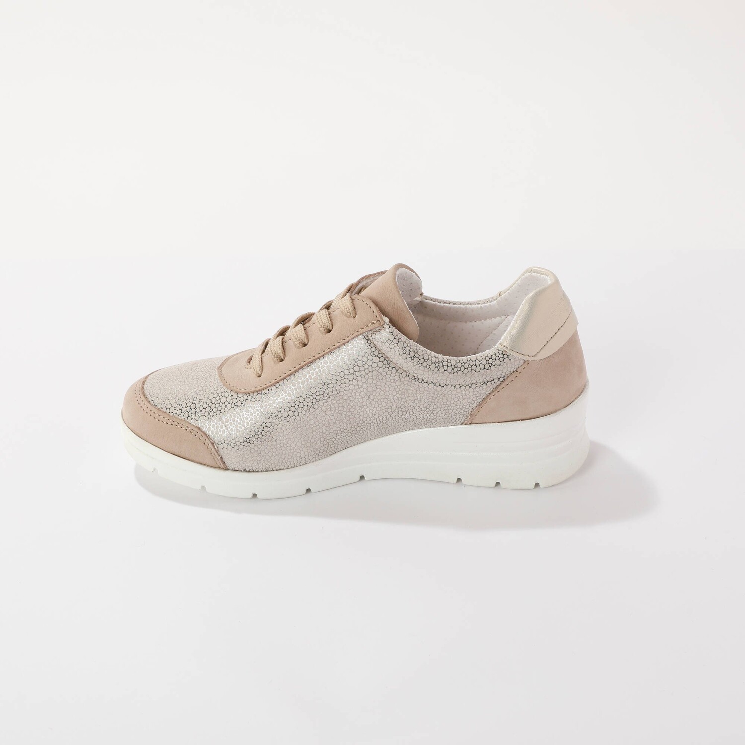 Kto powiedział, że sport i styl nie idą w parze? Nie wahaj się i załóż lekkie trampki z przewiewnego materiału. Sznurowadła w tym samym kolorze. Piankowe wzmocnienia z przodu i z tyłu. Wyjmowana wkładka na piankowej podstawie. Pętelka z tyłu.