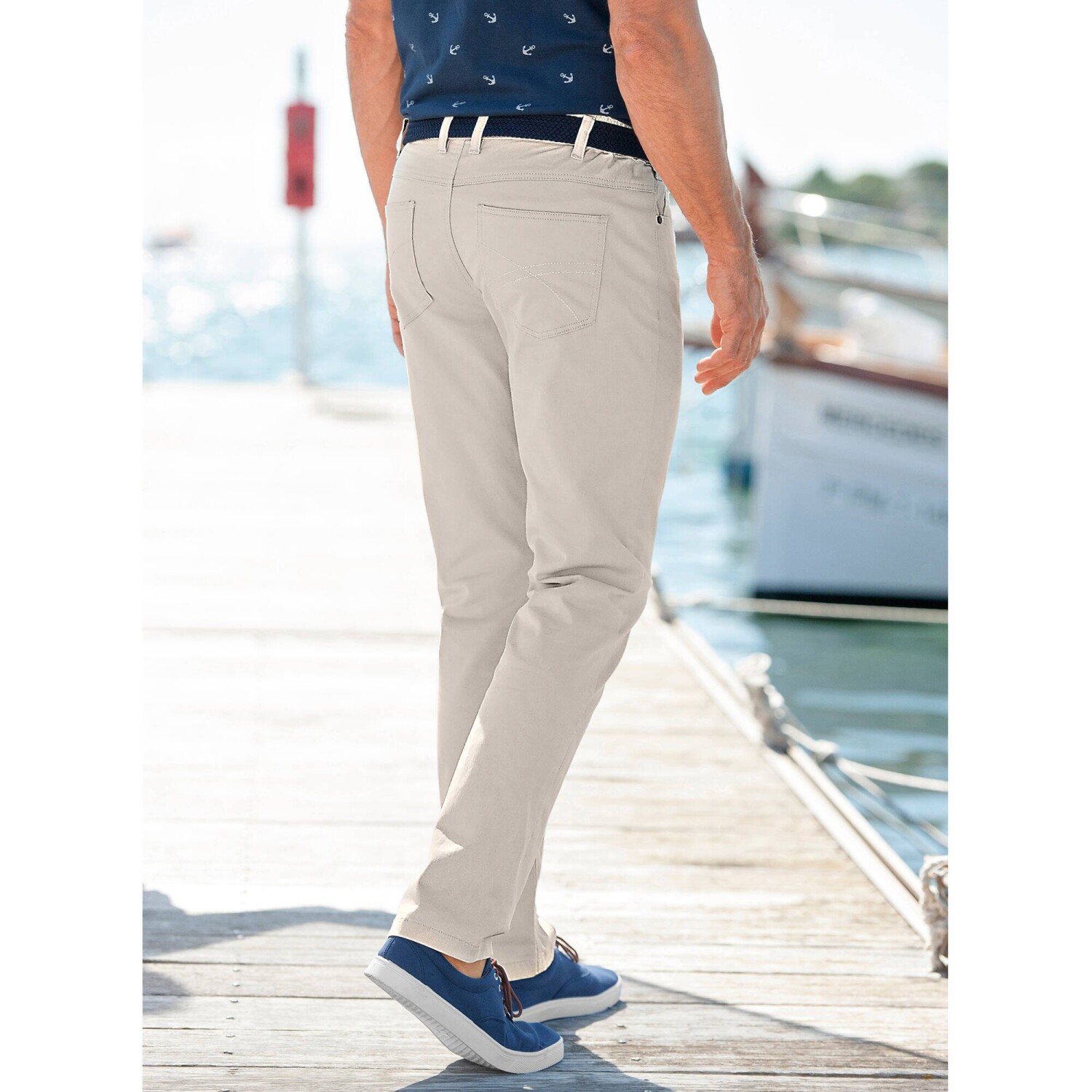 Spodnie z 5 kieszeniami to niezbędny element męskiej garderoby. Można je nosić na co dzień z T-shirtem lub elegancko z koszulą lub swetrem z okrągłym dekoltem. Zaprojektowane specjalnie dla osób o drobniejszej sylwetce, są wygodne dzięki gumce w pasie i elastycznemu materiałowi. Prosty krój. Elastyczny, wytrzymały materiał. Szlufki w pasie, gumka po bokach. Zamek błyskawiczny z patką i guzikiem. 2 kieszenie + 1 mała kieszeń z przodu. Podwyższony tył i 2 kieszenie naszywane. Standard 100 według Oeko-Tex (nr CQ 1216/ 3 IFTH). Ten znak oznacza produkty tekstylne poddane badaniom laboratoryjnym na obecność szerokiej gamy substancji szkodliwych, a produkt jest bezpieczny w stopniu wykraczającym poza obowiązujące normy. Można prać w pralce.
