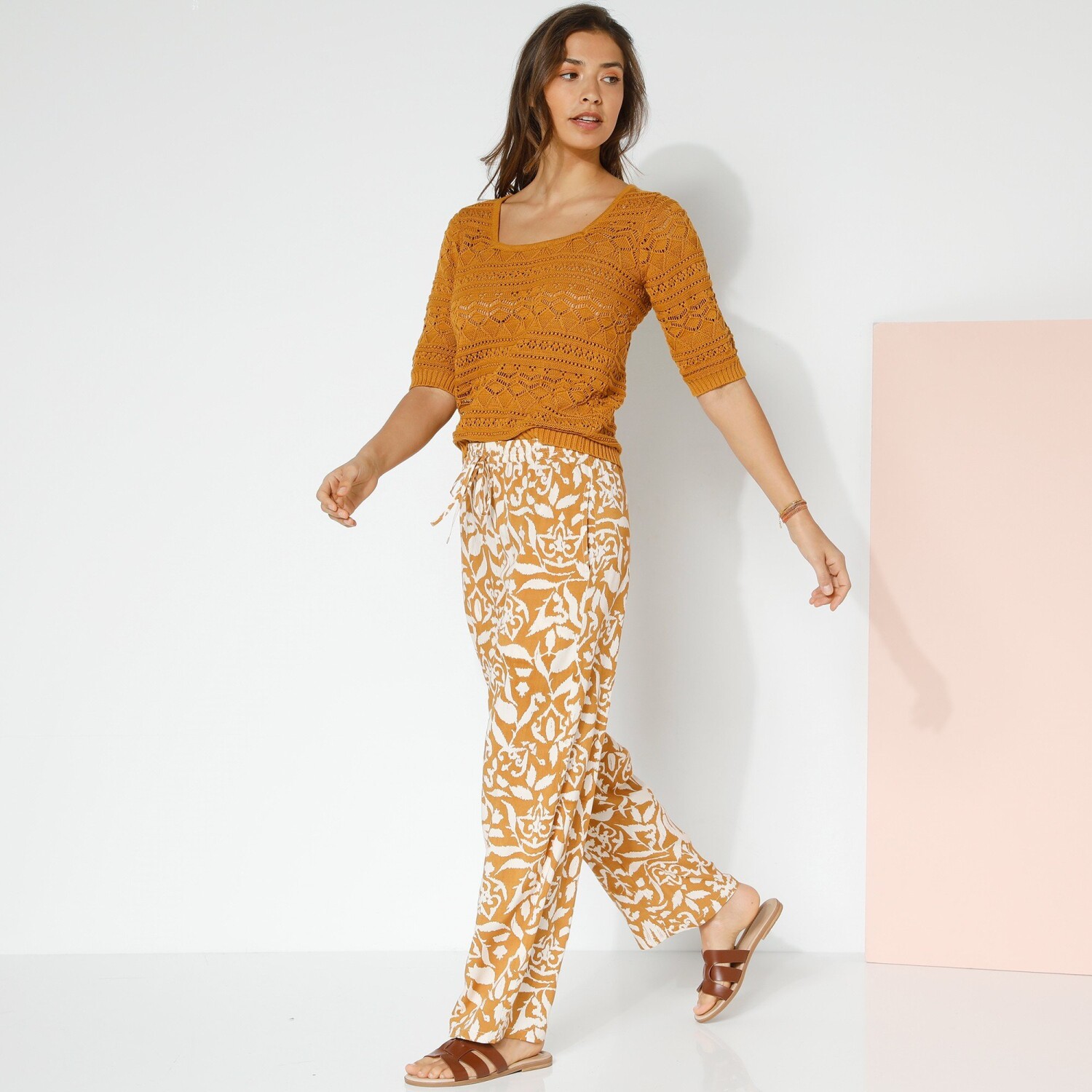 Przewiewne spodnie z szerokimi nogawkami i kwiatowym nadrukiem