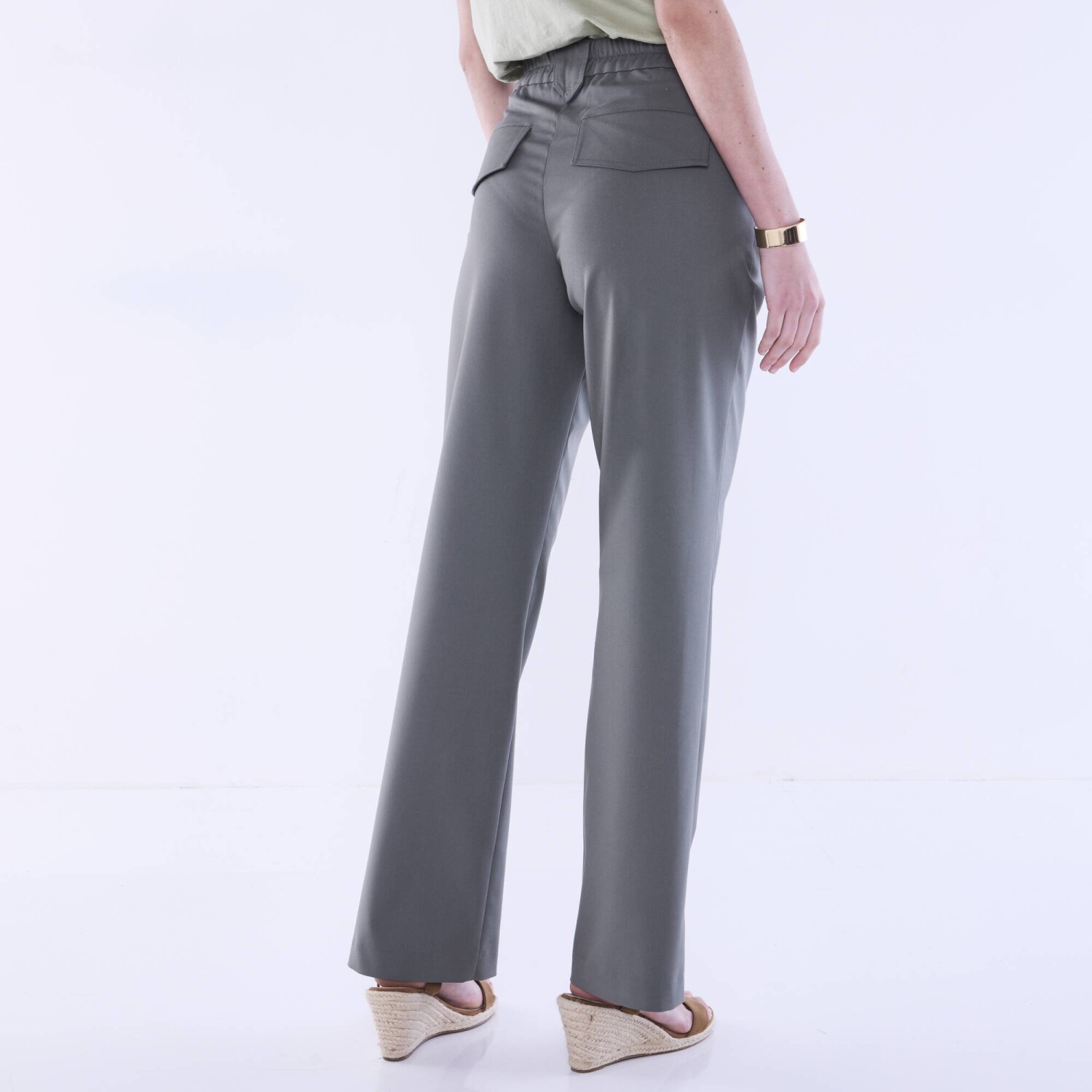 Idealnie dopasowany, szeroki krój: spodnie w jednolitym kolorze mają zawsze elastyczną talię, dzięki czemu są absolutnie wygodne. Wykonane z miękkiego, idealnie dopasowanego materiału. Szeroki krój. Regularna wysokość talii. Wyprofilowany pas, płaski z przodu, w pełni elastyczny z tyłu. Zapięcie na suwak + 1 guzik z przodu. 2 kieszenie z przodu. 2 kieszenie ze ściągaczem. 2 szerokie szlufki na palce z przodu i na środku z tyłu. 2 szlufki z tyłu po bokach. 2 kieszenie z patką z tyłu. Można prać w pralce.