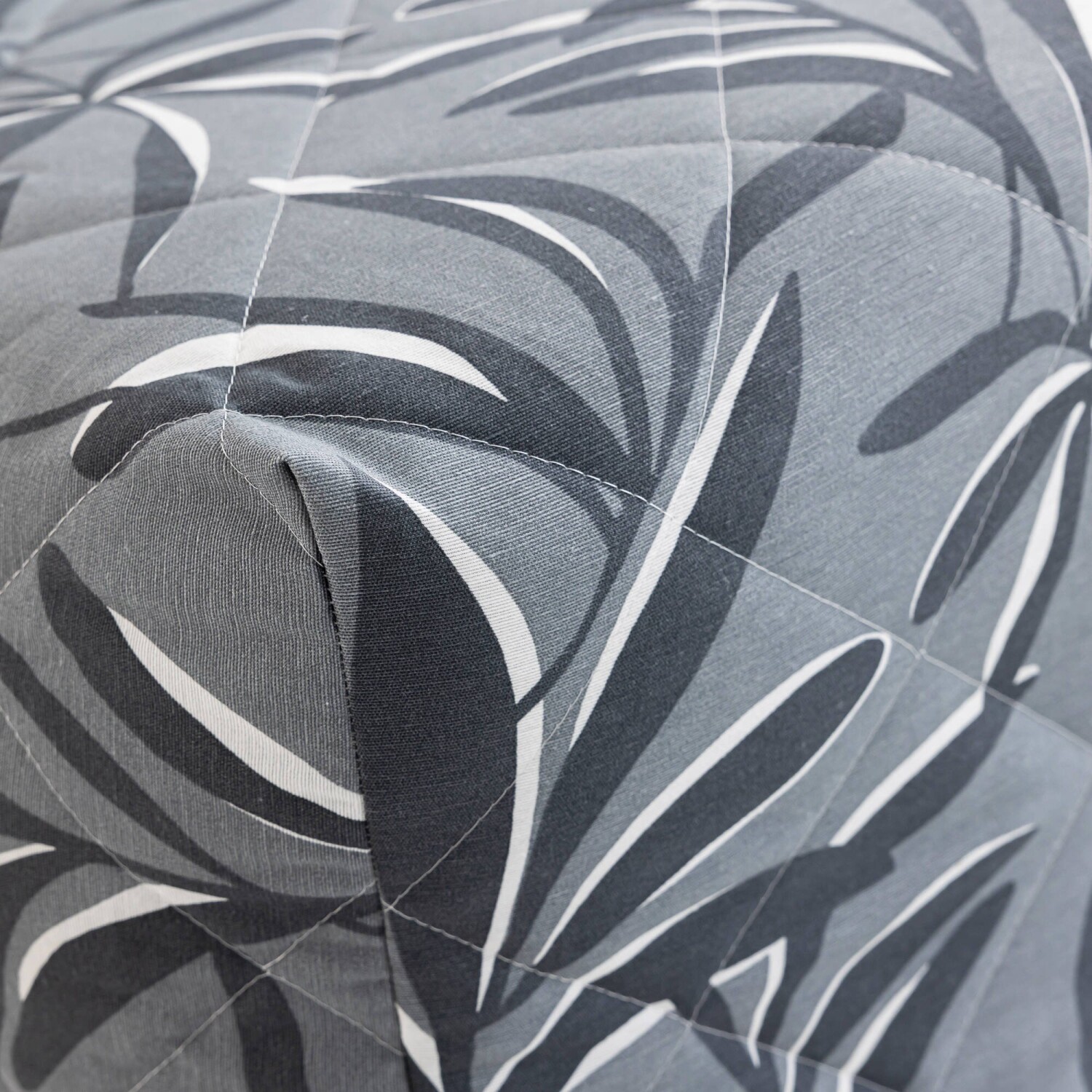 Pikowany pokrowiec na sofę typu harmonijka z nadrukiem liści, który nada nowy wygląd każdemu wnętrzu. Łatwa regulacja dzięki zamkom błyskawicznym z dwóch stron. Pokrowiec jest pełny, łącznie z oparciem. Pikowane siedzisko i oparcie. Wyprodukowano w Hiszpanii. Standard 100 według Oeko-Tex (nr CQ 1216/1 IFTH). Ten znak identyfikuje produkty tekstylne poddane testom laboratoryjnym na obecność szerokiej gamy substancji szkodliwych, a produkt jest bezpieczny w zakresie wykraczającym poza obowiązujące normy. Można prać w pralce.